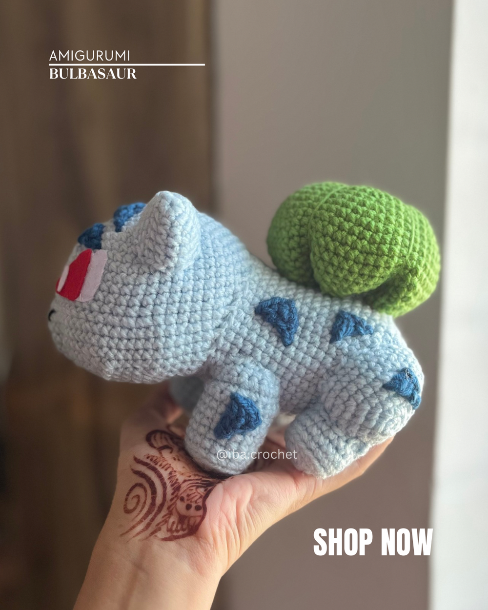 Handmade Bulbasaur Crochet Toy – Cute Pokémon Amigurumi