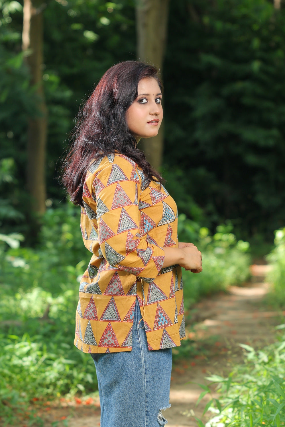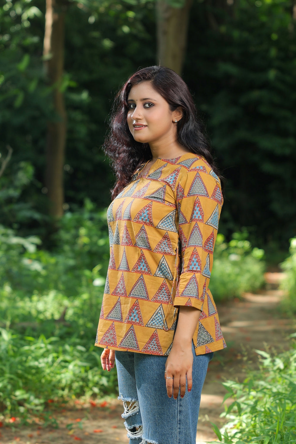 This Chapai kurti showcases Ajraka block print, adding a touch of traditional art to your wardrobe. It's...