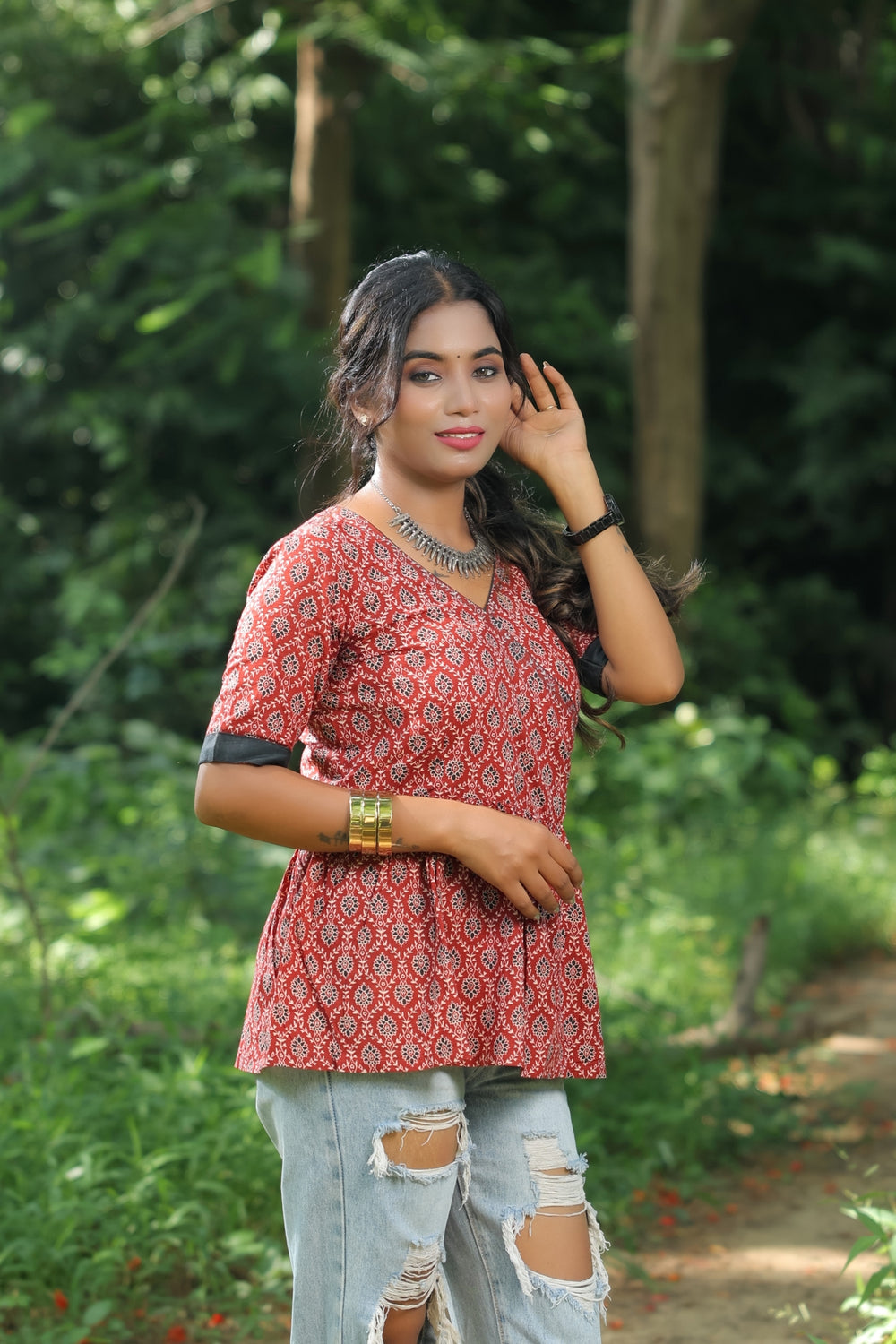 This Chapai kurti showcases Ajraka block print, adding a touch of traditional art to your wardrobe. It's made of high-quality cotton fabric, making it lightweight and comfortable to wear. Perfect for casual wear, this kurti is a must-have for anyone looking to embrace elegance and culture.