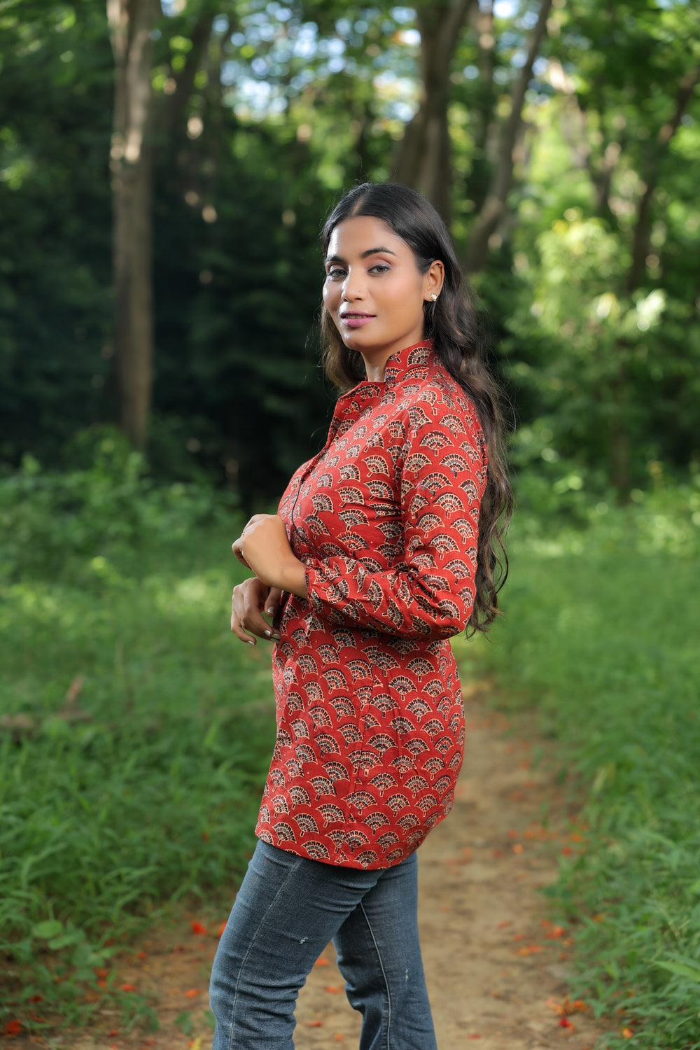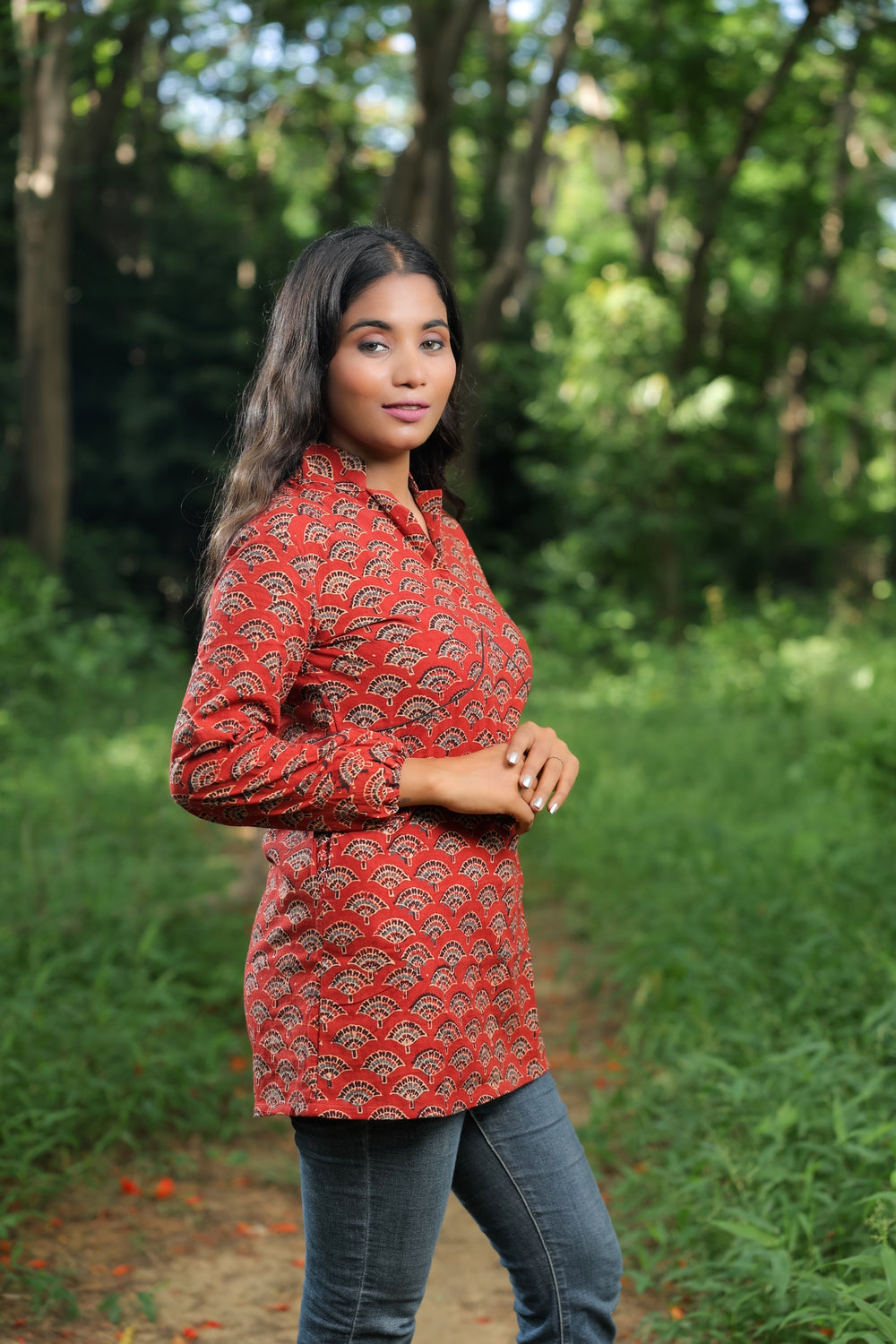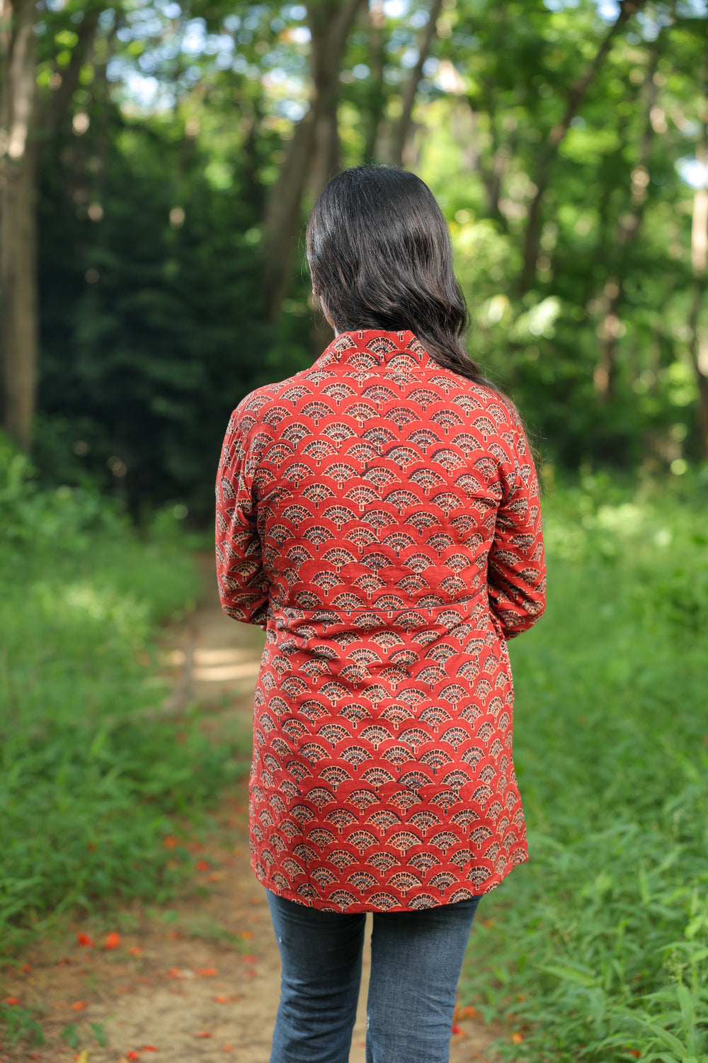 This Chapai kurti showcases Ajraka block print, adding a touch of traditional art to your wardrobe. It's...