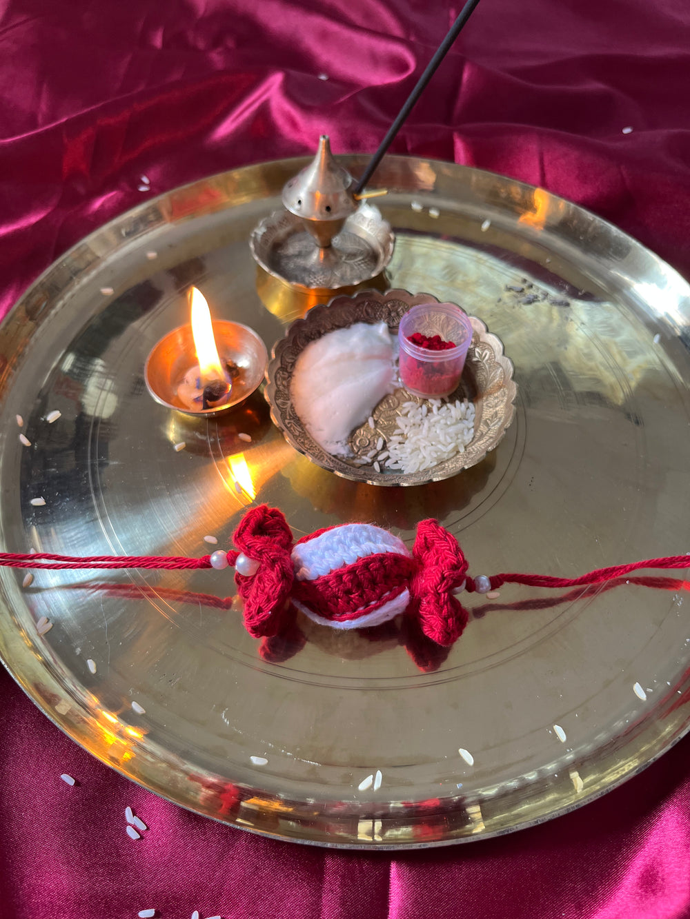 Add a sweet twist to Raksha Bandhan with our Handmade Crochet Toffee Rakhi, crafted with love using soft resham threads in fun, vibrant candy colors. This adorable rakhi, shaped like a toffee, is perfect for little brothers, kids, or anyone who brings sweetness to your life!