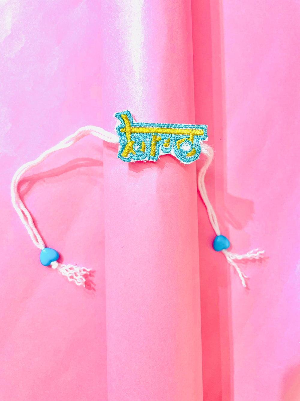 Handmade Rakhi with Moti, Resham Thread & Gotta Work