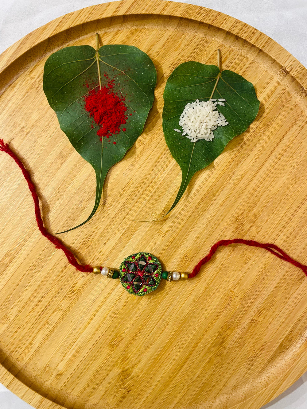 Celebrate Raksha Bandhan 2025 with our beautiful handmade Rakhi, crafted with premium Resham (silk) thread and traditional Gota Patti work. This designer Rakhi for brother is the perfect blend of Indian heritage, elegance, and modern style.