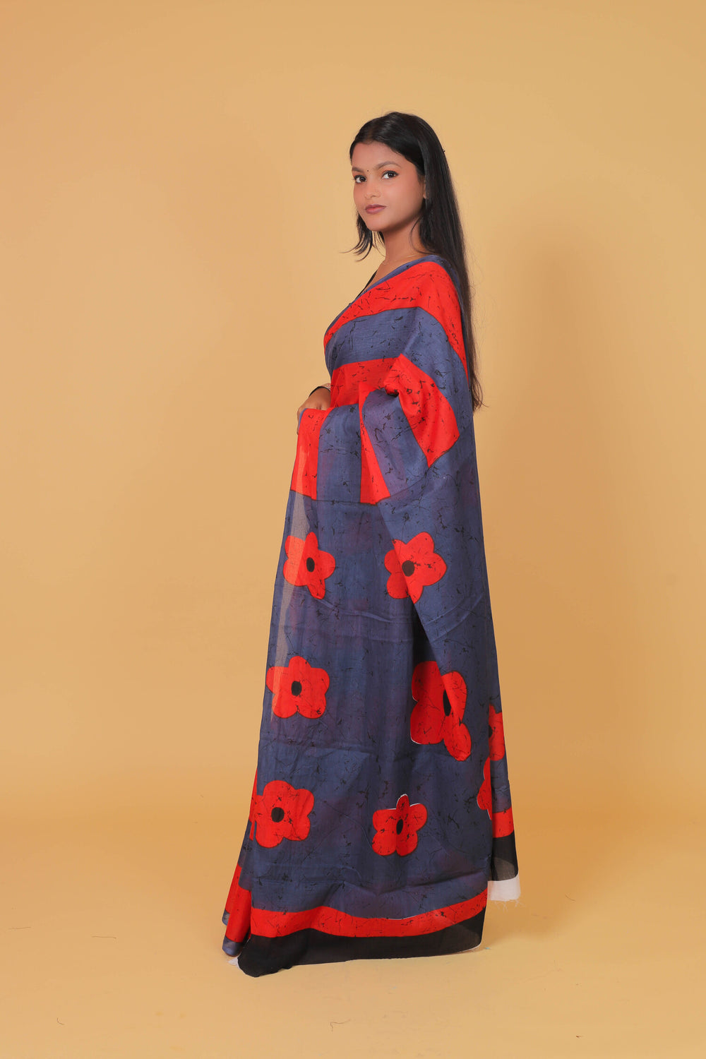 Adorn yourself with the finesse of our mul mul cotton saree (Grey). Immerse in the world of pure mul mul cotton sarees online and find the perfect piece for your collection.