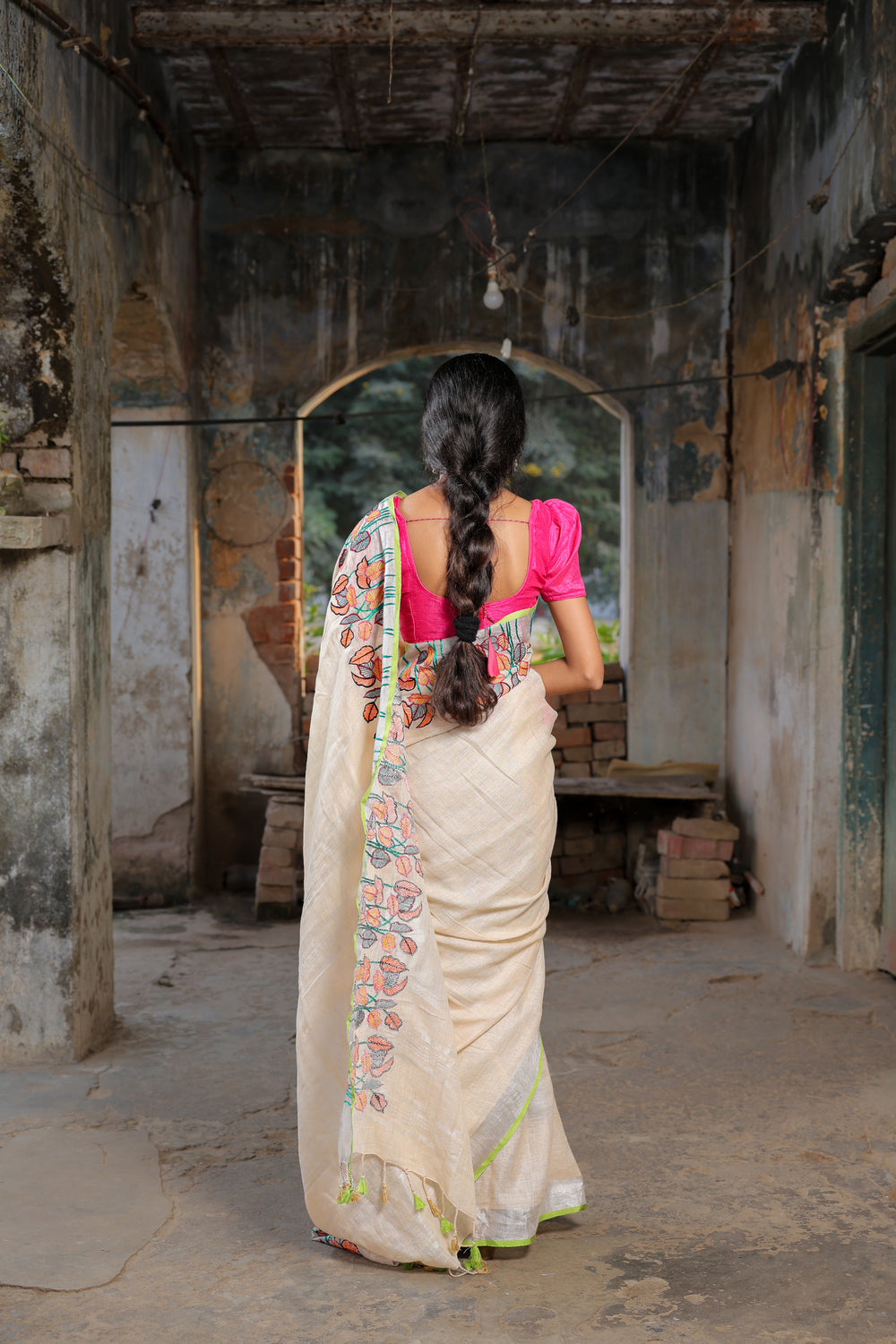 Introducing Rangjaal, the exclusive collection from nayabstores. Crafted with intricate patchwork and embroidery on linen sarees, each piece is a masterpiece. Experience the unique blend of traditional techniques and modern design, perfect for adding a touch of elegance to your wardrobe.